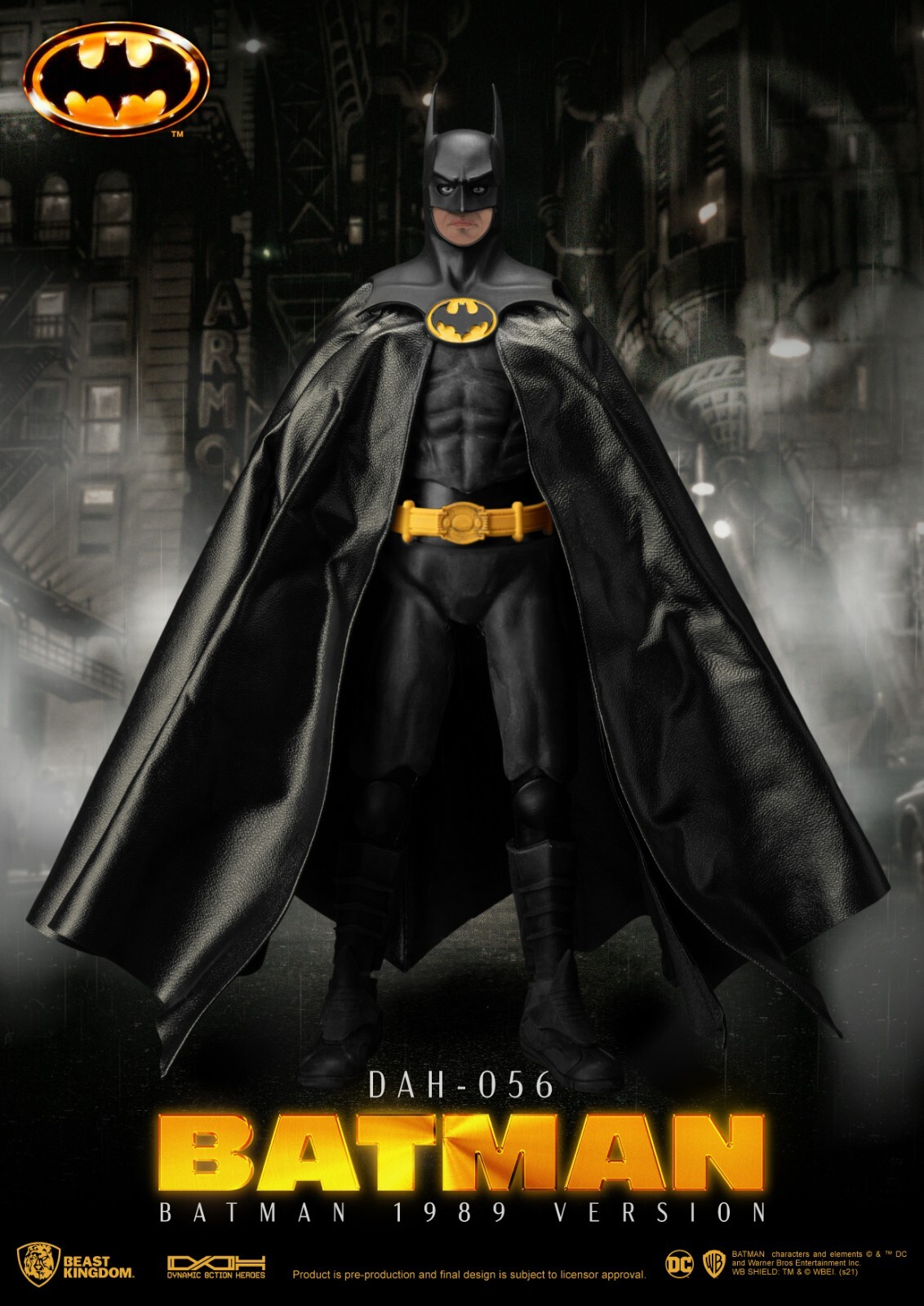 Beast Kingdoms Entertainment Experience Brand proudly enters the world of Tim Burtons Batman with the release of a highly articulable DAH-056 1989 Batman. An action figure ready for the ultimate in posing possibilities with its 20 points of articulation, the DAH-056 gives fans the iconic suit using PVC to recreate the rubberized look. Coupled with the usage of real fabric and wiring for the cape, collectors can enjoy a highly detailed take on the classic design. Over 30 years ago, the classic bat logo was plastered across billboards the world over and then proudly displayed on Batmans armored chest, it is also here recreated in all its glory. In addition to a highly detailed suit, the set comes with a host of weapons and replaceable mouth sculpts to truly give fans their perfect posing scenario. Grappling guns, batarangs and more are all on full display.