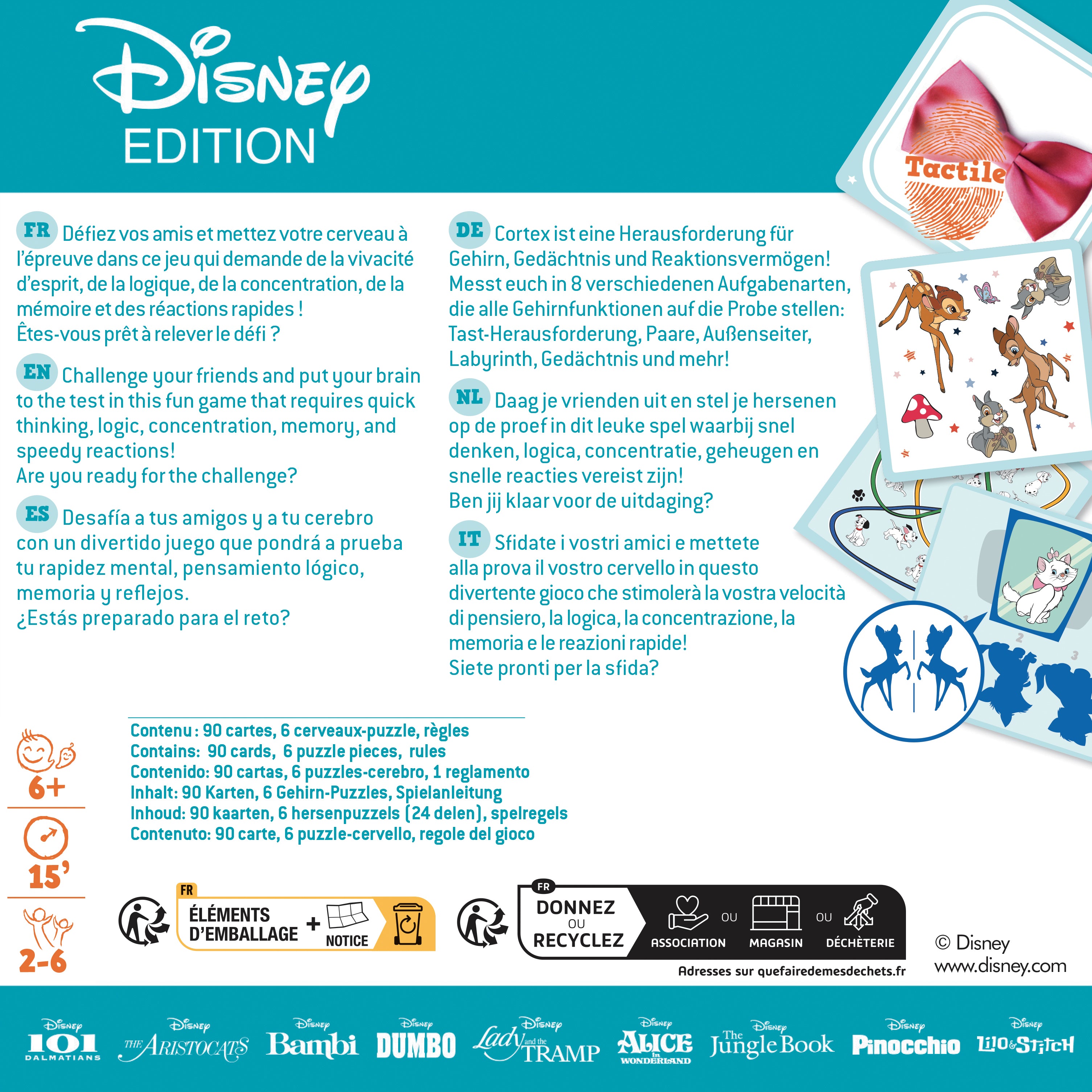 Cortex Disney contains 8 challenge types as well as 10 tactile cards that players will try to recognize for extra points!