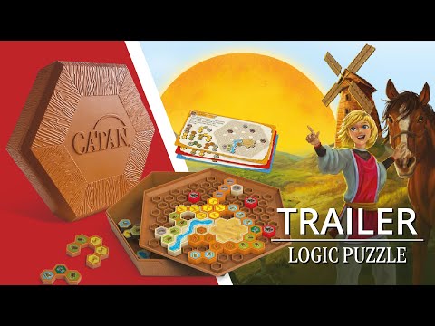 The CATAN Logic Puzzle is a solo-player puzzle for ages 8 and up. It includes one storage case with built-in playing board, 40 puzzle cards, 33 resource pieces, and instructions. The puzzle is expected to be released in October this year.