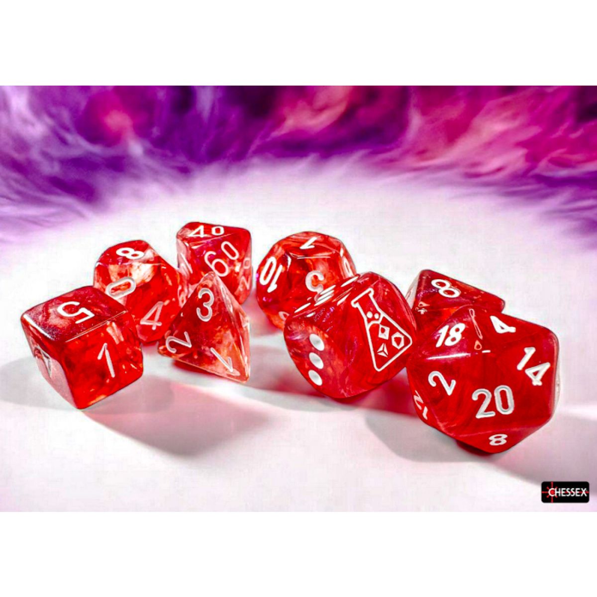 CHX 30070 Borealis Passion/white Luminary Polyhedral 7-Dice Set (with bonus die)