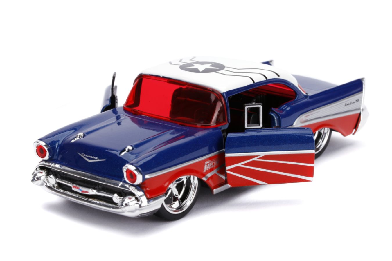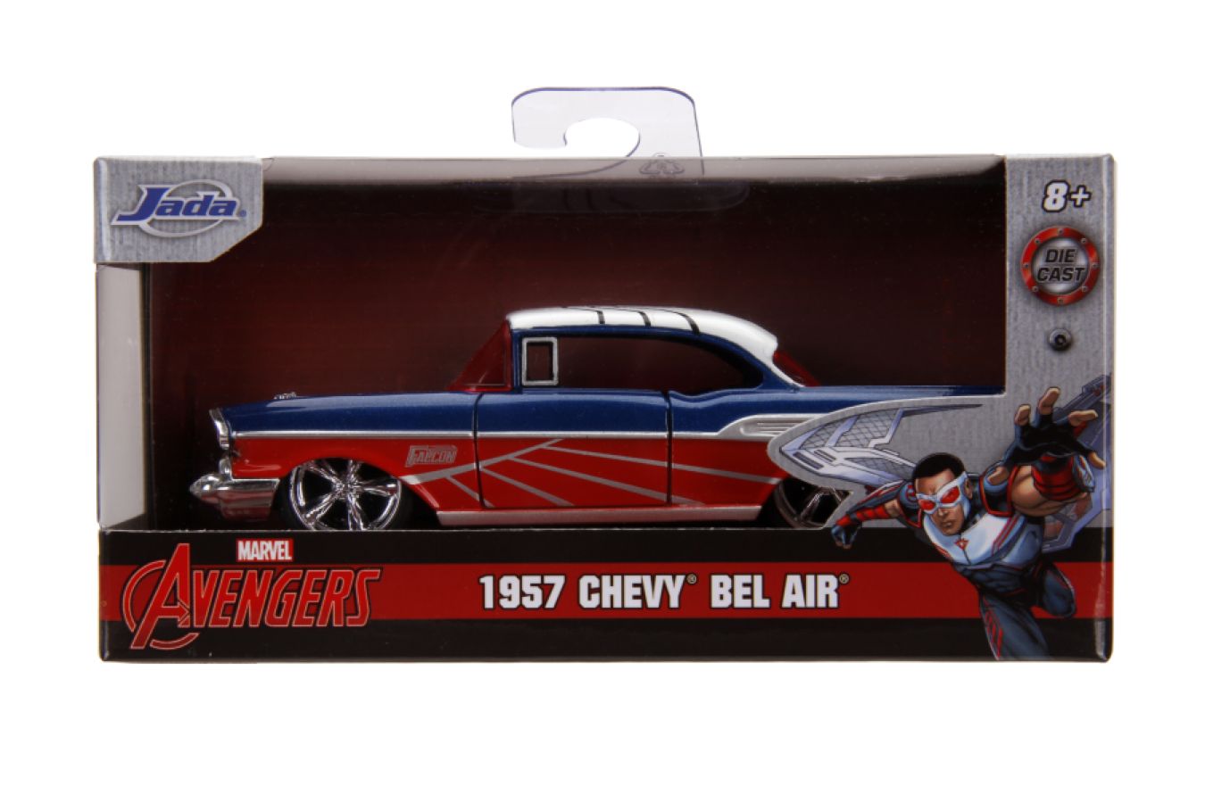 This 1957 Chevy Bel Air-Hard Top takes its styling cues directly from Falcon. This vehicle features opening doors along with a detailed interior. This beautifully sculpted collectible is sure to be a standout in any MARVEL collection.