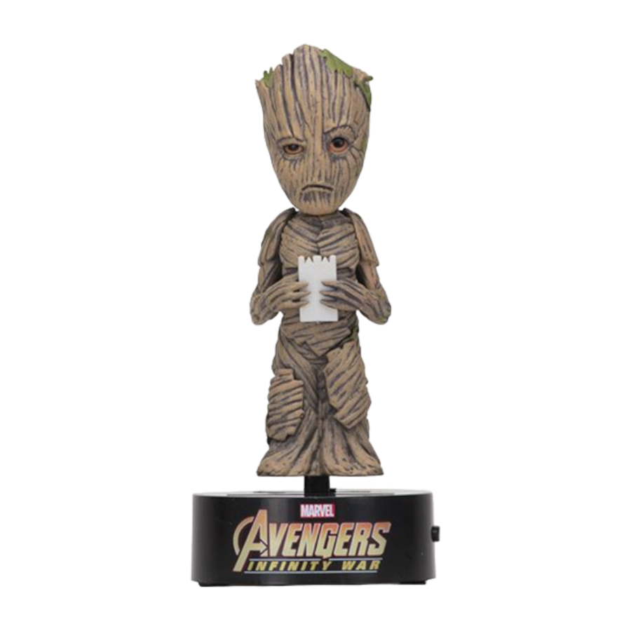 From Marvel Studios' upcoming Avengers: Infinity War, Groot stands approximately 6.5" tall and rocks from side to side when exposed to light. Collect all your favorites and watch them dance the day away!