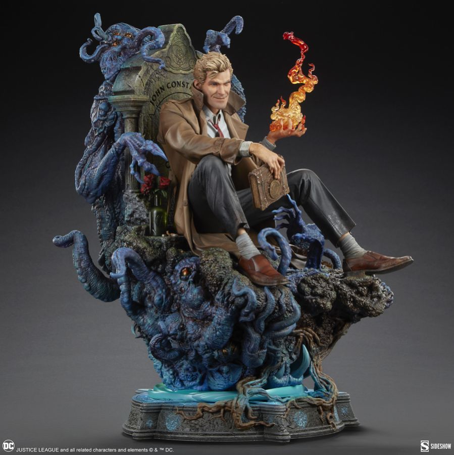 What's another spell gone wrong for this charming degenerate? Measuring 21" tall, 16.5" wide, and 14.7" deep, the John Constantine Premium Format Figure finds everyone's favorite antihero lounging against his own grave. A swarm of oozing, pustulant demons rises from Hell to drag Constantine back down where he belongs. Nonchalant as ever about his sorry state, Constantine simply summons another fireball and doesn't bother to consult the arcane tome in his hand. He'll banish these evil entities when he feels like it - and no sooner.