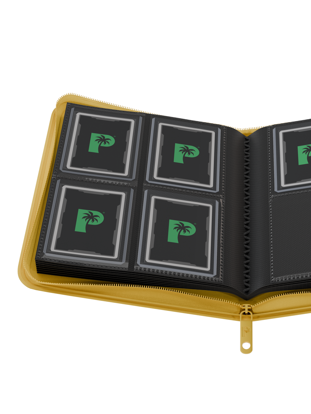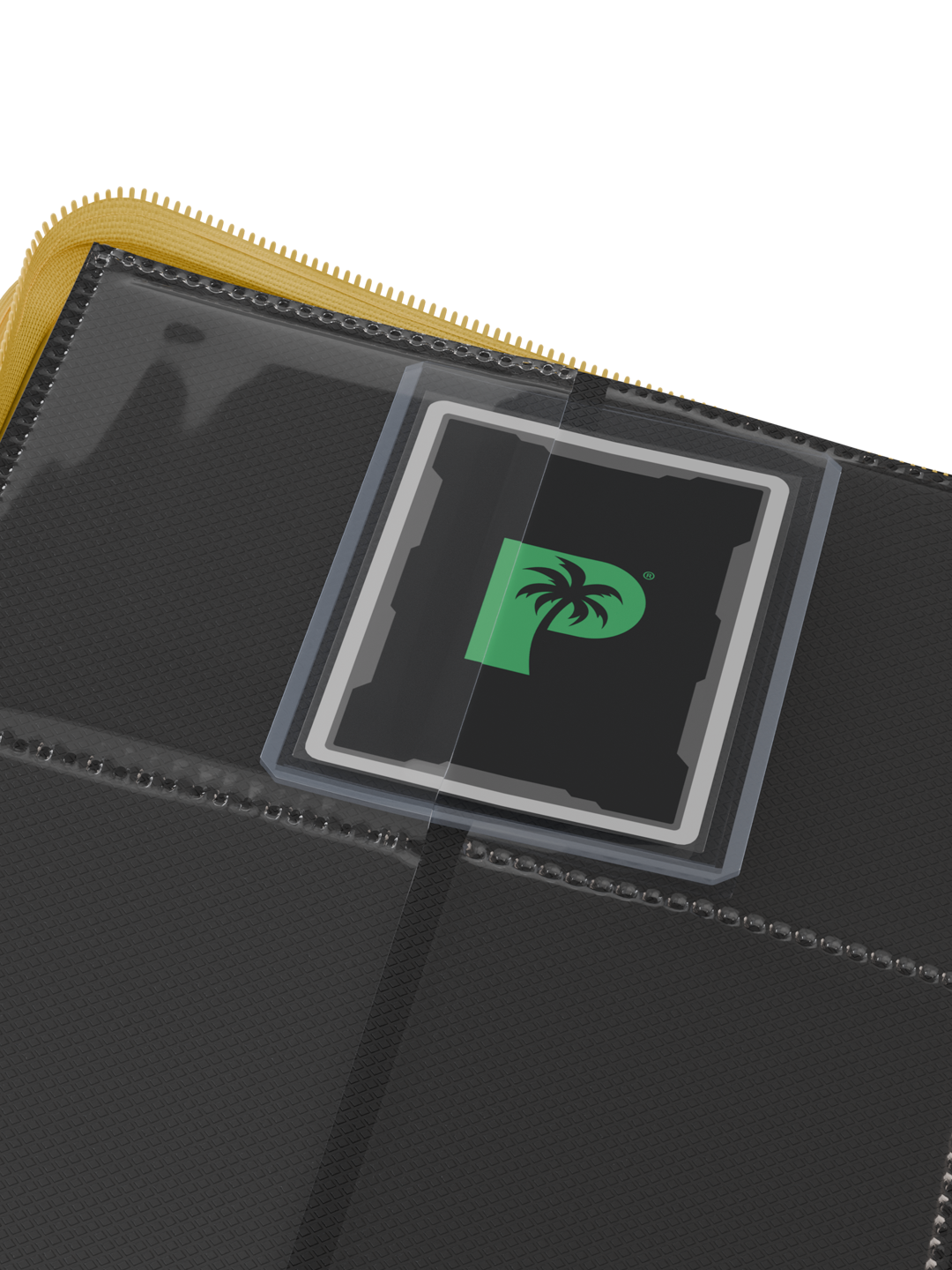 Collector's Series Top Loader Zip Binder - 4 Pocket - Yellow. A Yellow palms off binder with a white background.