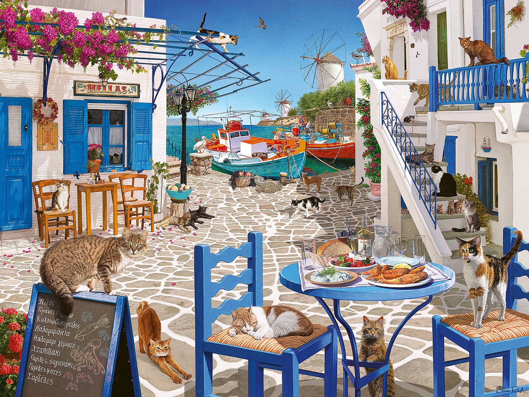 Escape to the sun‑soaked Greek islands with the Ravensburger Cats of Mykonos Puzzle. This enchanting 1500‑piece design captures the beauty and tranquillity of Mykonos, with its whitewashed houses, striking blue shutters, and sparkling seaside views. Scattered throughout the scene are the island’s charming feline residents, adding personality and warmth to this picturesque Mediterranean vista.