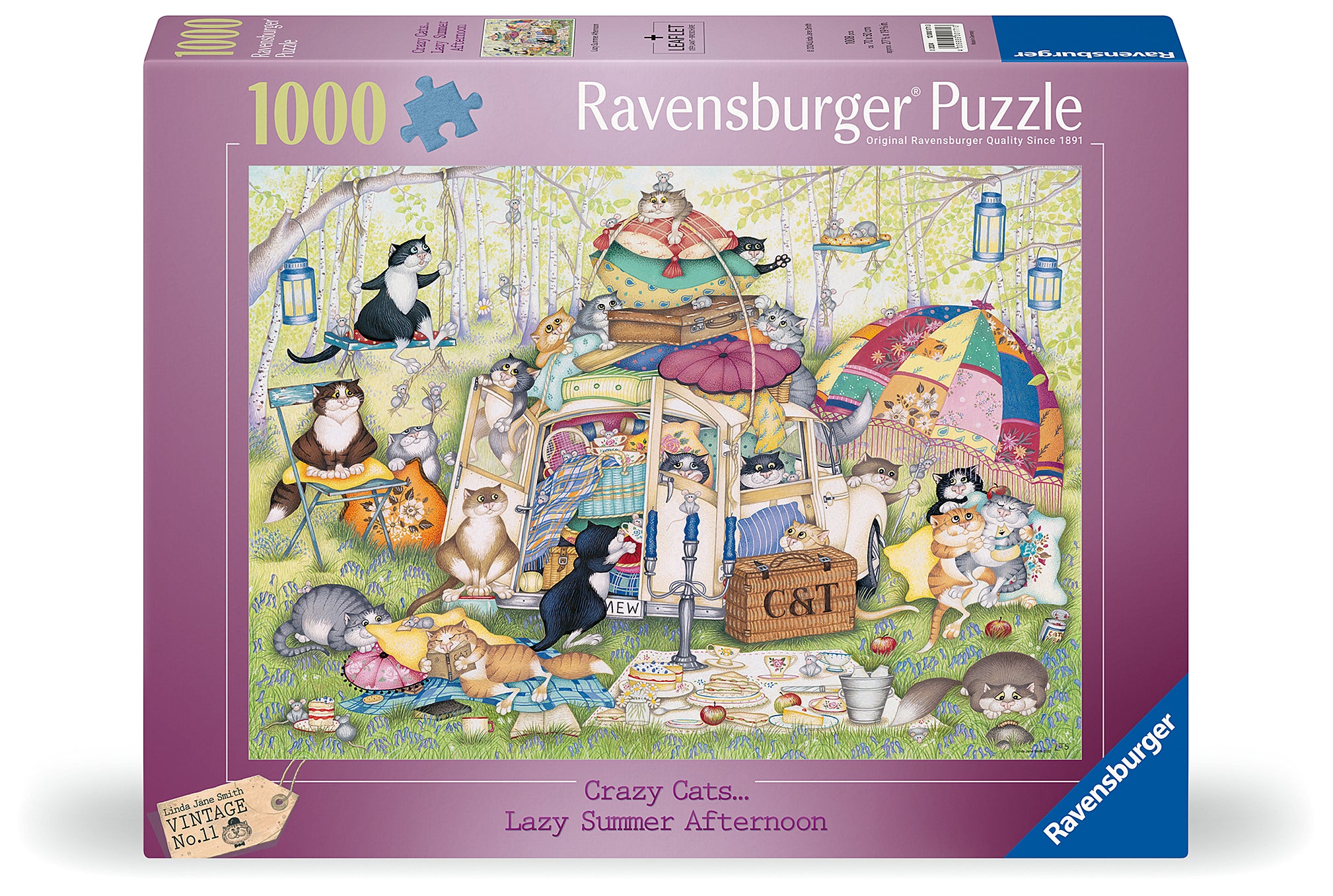 Enjoy a dose of feline fun and summer charm with the Ravensburger Crazy Cats Lazy Summer Afternoon Puzzle. Packed with playful detail, this 1000-piece puzzle captures the quirky antics of the beloved Crazy Cats as they laze about on a warm afternoon. With every piece, you’ll uncover charming hidden surprises and humorous moments that make puzzling a delightful and relaxing experience for cat lovers and humour fans alike.