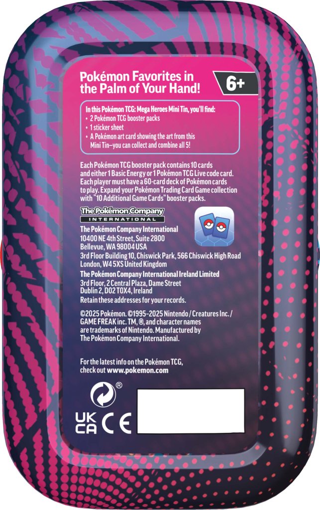 In this Pokémon TCG: Mega Heroes Mini Tin, you’ll find:
