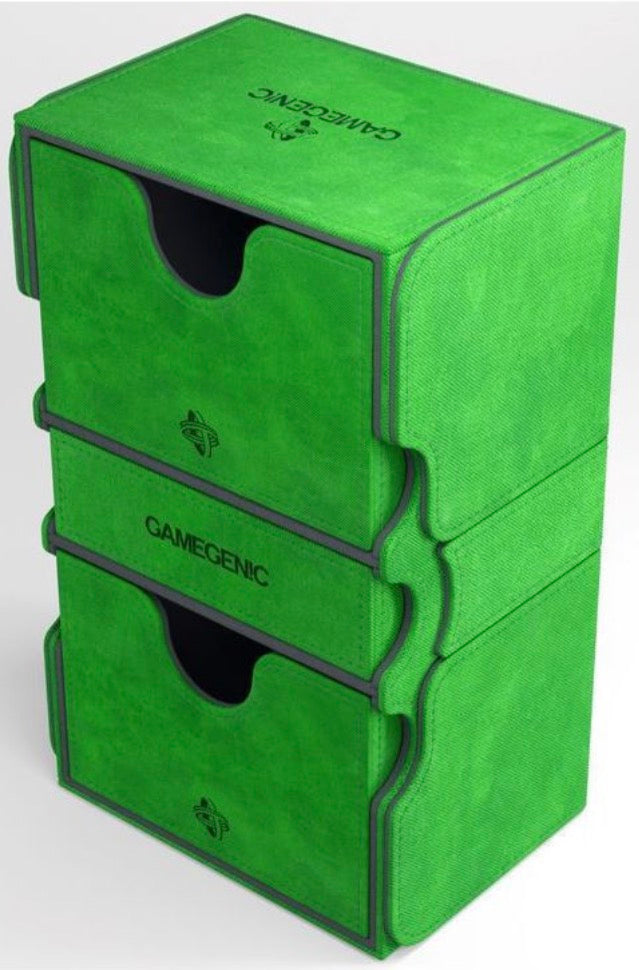 Two removable card holders keep up to 200 double-sleeved cards in this large and extremely robust deck box. The Stronghold is covered with elegant Nexofyber material, with soft microfiber inside, and also contains an accessories drawer. Just like other Convertible products, its flaps are removable and can be clipped to the back side of the box. Powerful magnets ensure a safe closure. Completely removable, interchangeable flaps and inner card holders offer Mix & Match customization options.