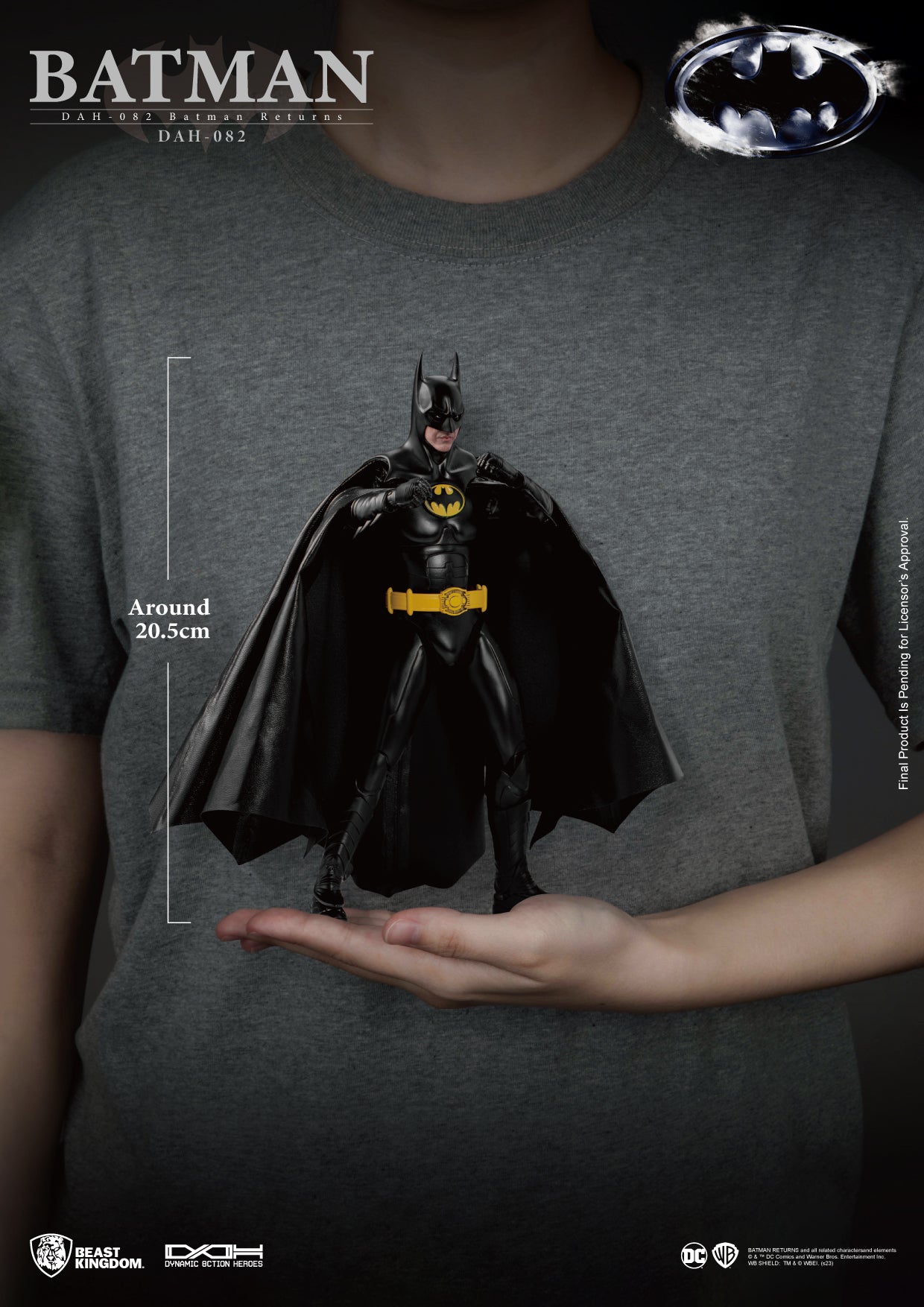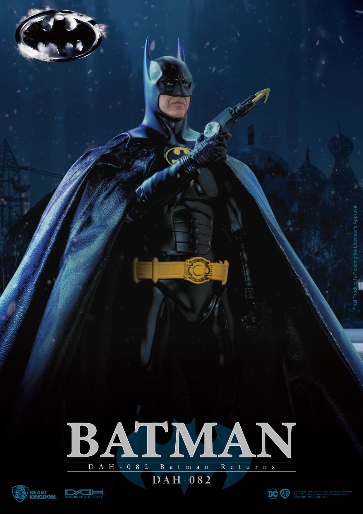 As the original design of the Batman Returns suit remains firmly embedded in pop culture history, Beast Kingdom's "Entertainment Experience Brand" celebrates the release of the new Flash movie by revisiting the iconic Batman Returns suit from the 1992 film. Relive the memorable scenes with your own D.A.H (Dynamic 8ction Heroes) action figure. With over 20 points of articulation, this brooding superhero is meticulously recreated with high-quality detail. The figure features the iconic yellow and black Batman logo, complete with the utility belt and muscular black suit, complemented by a real fabric cape. The set also includes a variety of accessories such as the Batarang, mini darts, and communicator. For avid fans of the classic Batman, this collector's set is an absolute must-have. Place your order exclusively from a Beast Kingdom outlet today!