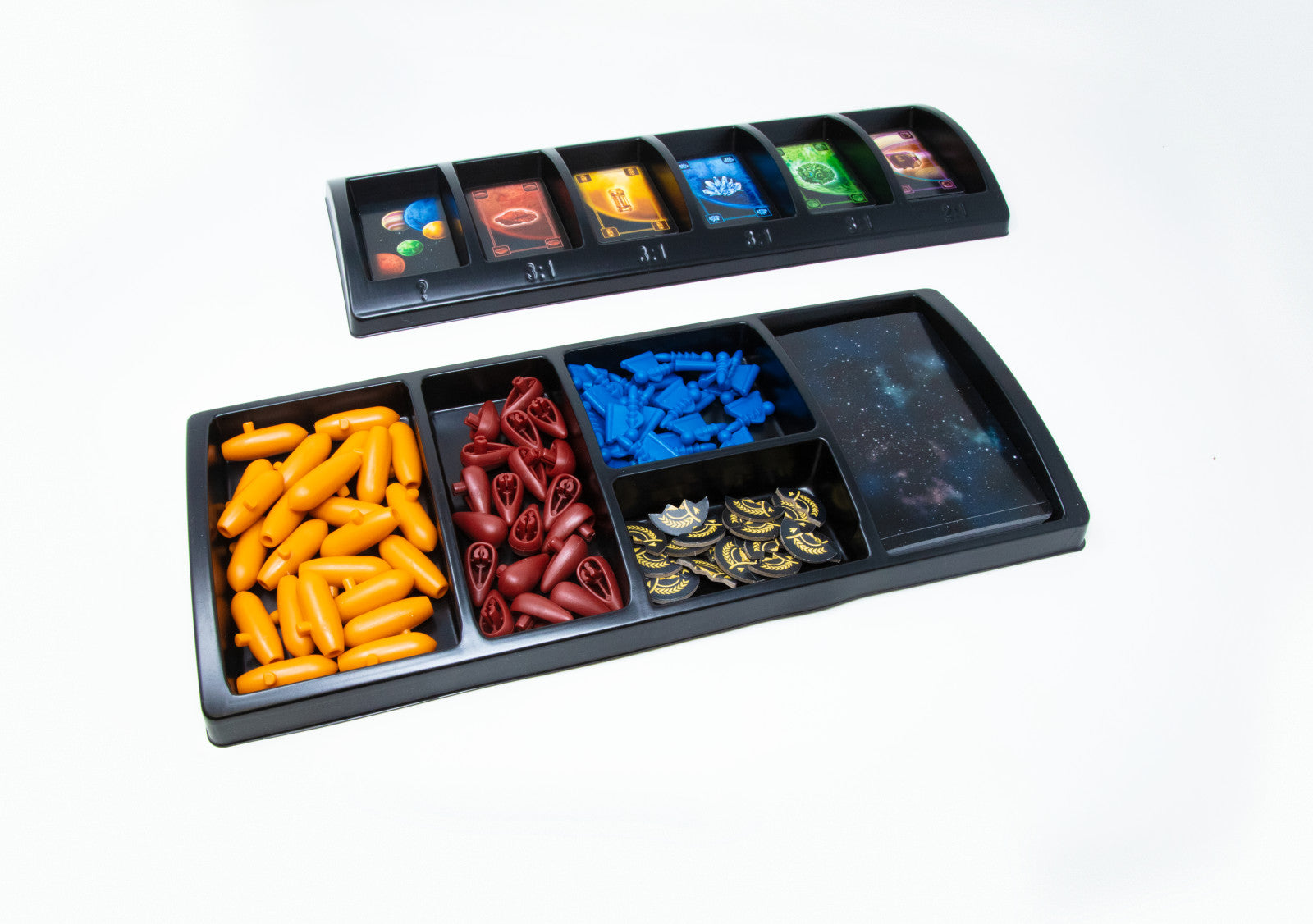 Finally, a jump to the stars has succeeded! It is the middle of the 3rd millennium. You and your fellow Catanians travel in spaceships to distant planetary systems in search of more resources. Along the way, you befriend alien civilizations who might become valued trading partners.