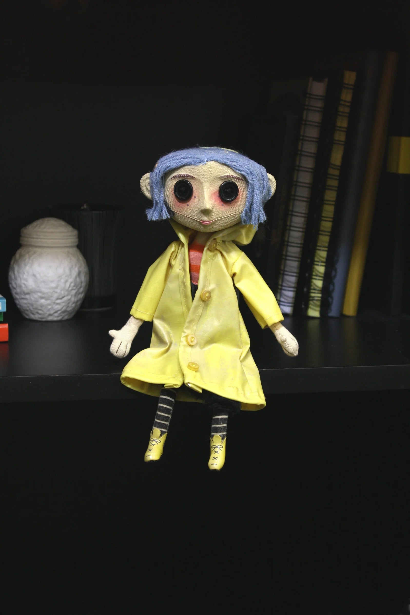 Bring home the weird world of Coraline! This detailed replica of Coraline's doll comes from the stop-motion movie adaptation of Neil Gaiman's fun and spooky book. It lovingly reproduces the doll as seen in the film, from the yarn hair and button eyes to the iconic yellow raincoat. A great collectible for fans of all ages.