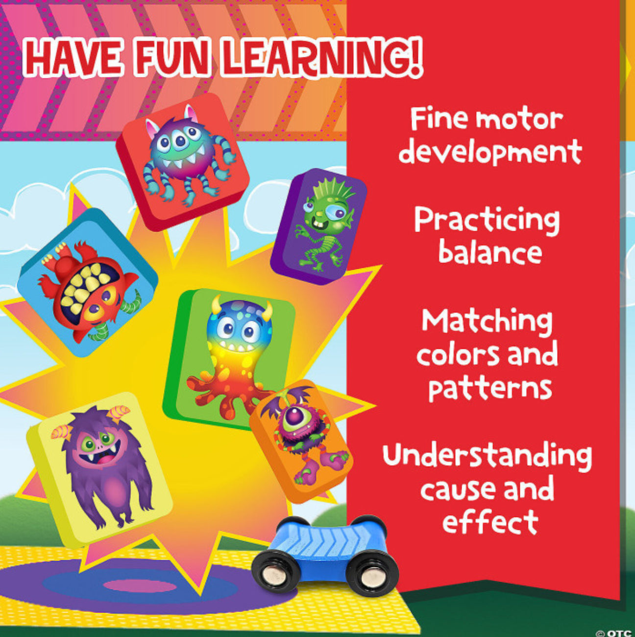 This sweet game lets toddlers stack blocks and send monsters skateboarding down a ramp…straight into their stacked creation. CRASH! Tailored for the curious minds of preschoolers, this game features foam monster blocks that toddlers can stack at random, or they can follow the game rules by drawing a card and stacking their blocks to match the card. Little ones love building and knocking down the blocks time and time again while parents appreciate the development skills being built through play. It’s a win-win situation were no one loses and everyone has a blast playing, learning and bonding!