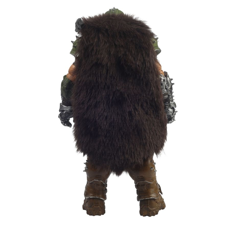 Includes soft goods faux fur cape, 2 alternate hands, display base and 4 Elite weapons: the Pulveriser, flail, combat shotgun and shield saw