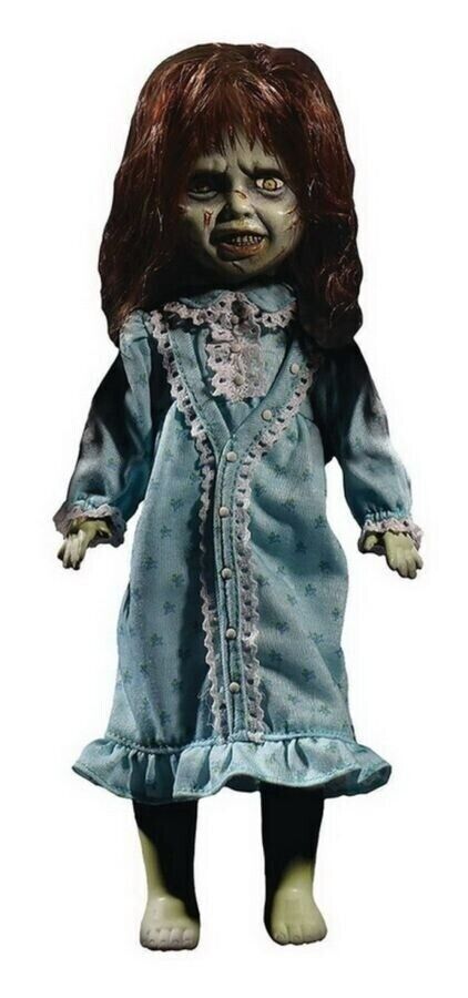 The Living Dead Dolls Present The Exorcist stands 10 inches tall, has real cloth clothing, rooted hair, and features 5 points of articulation. She comes packaged in a specially die-cut window box featuring graphics from the horrifying cinematic masterpiece.