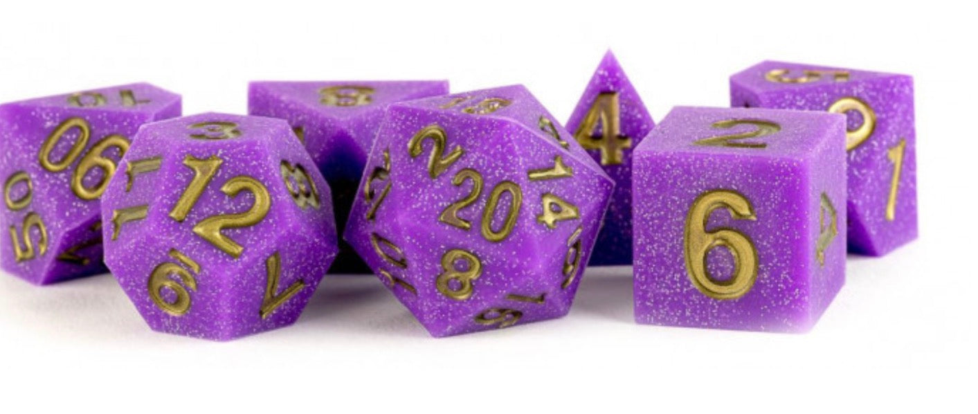 MDG is working with a new dice material! Sharp Edge Silicone Rubber dice are fun and unique to roll. Sharp edges provide a precise roll that is complemented with the slight bounce of silicone. Each full-sized, 16mm set comes with 7 dice (d4, d6, d8, d10, d10% (00-90), d12, and d20).