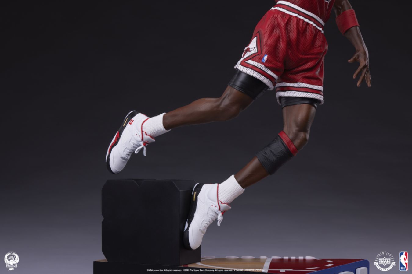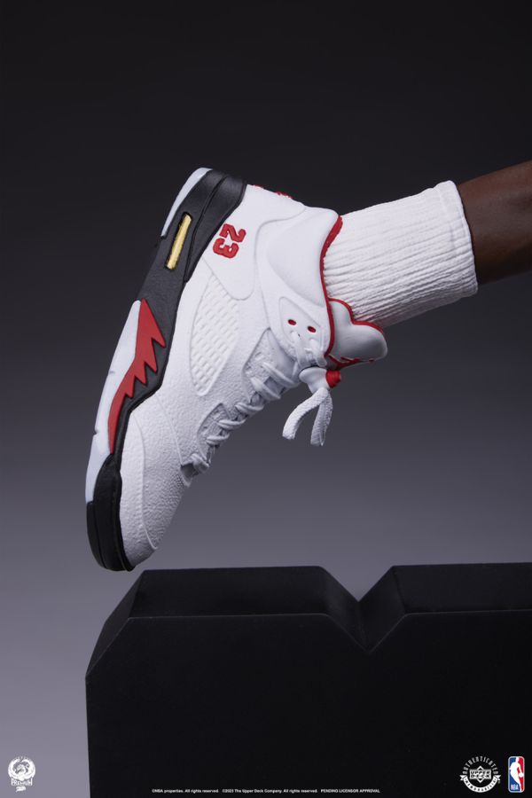 Soaring mid-air with ball in hand, ready to throw it down, Jordan's pose is emblematic of his storied career. His highly detailed Chicago Bulls uniform and iconic Nike Air Jordan V sneakers are modeled with realistic textures that stay true to the original designs. There's no competition when it comes to the intricate sculpting and hyper-realistic paint detailing of this piece.
