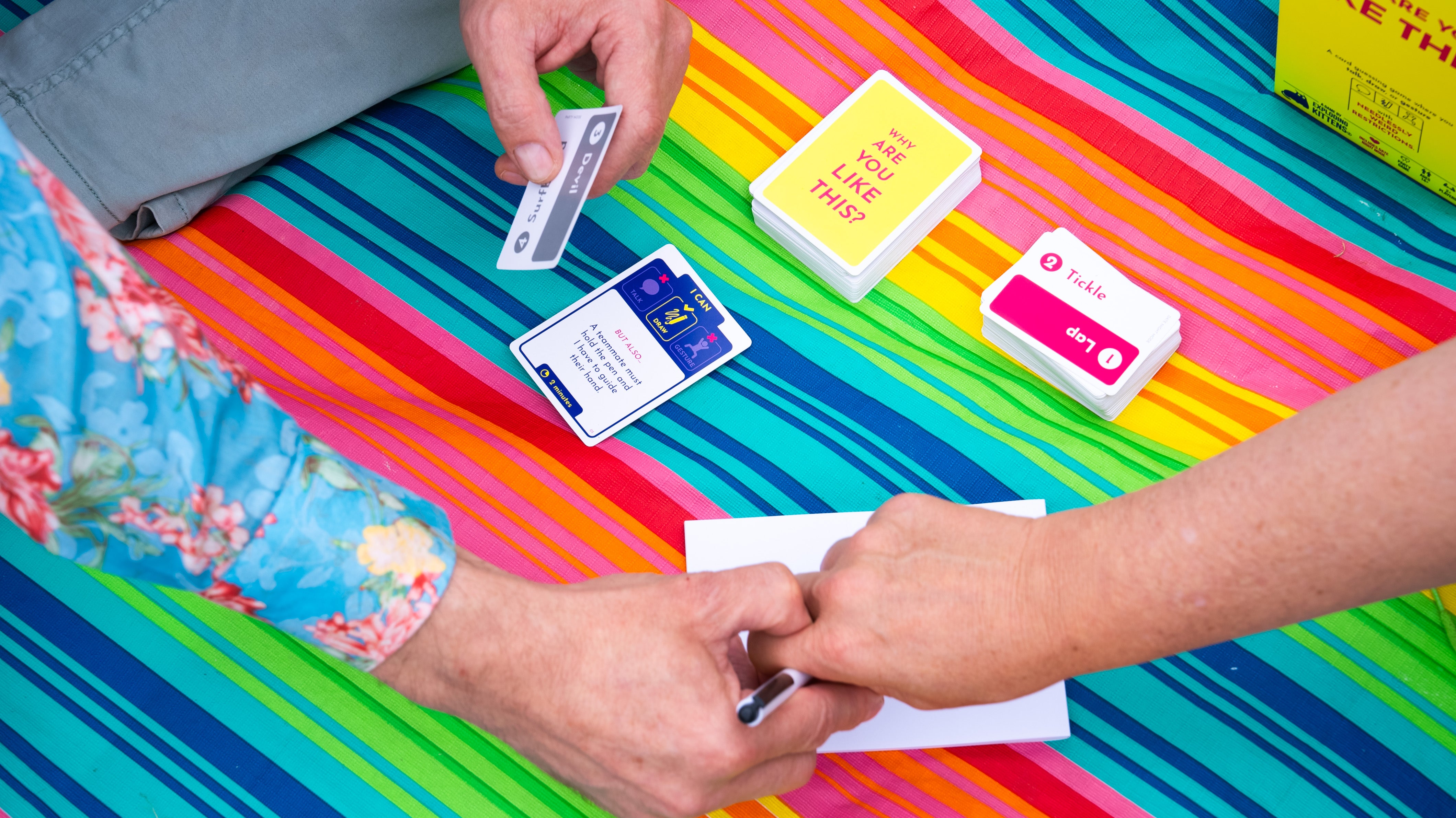A card guessing game where you talk, draw, or gesture.